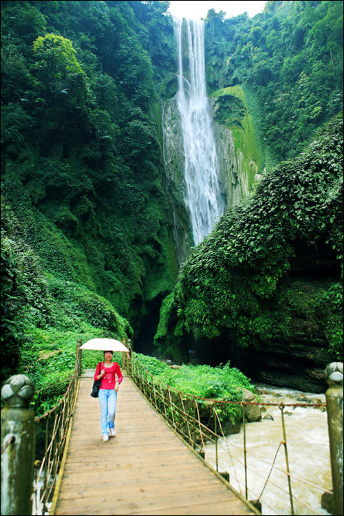 乘車前往通靈景區(車程約1個小時),后游覽【通靈大峽谷景區】(徒步游覽約2.5小時):沿青石臺階逐級而下,參觀古石疊、藏金洞、一線天、恐龍時代同步生長的珍稀植物;涉過芙蓉河、領略落差188.6米高的通靈大瀑布氣勢,觀地下河九疊瀑布奇景等大自然奇景;之后再游覽風光綺麗的念八峽。