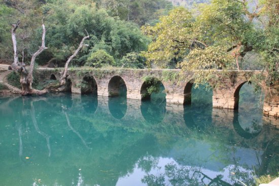 早餐后從貴陽出發約4個半小時左右到達荔波小七孔,中餐后開始游覽小七孔(游覽約3小時)。乘坐景區電瓶車(40元/人,已含此費用)進小七孔景區,有著名的小七孔古橋,這是當年西南地區通往廣西的唯一通道;秀麗的68級響水河瀑布、拉雅瀑布,(遠觀龜背山原始森林、野豬林漏斗森林等)景點一派原始野趣;響水河層層疊疊的落差流,湍急而下,景觀奇麗。峽谷內,水聲隆隆,白瀑狂奔,令人目不暇接,瀑布群中,樹、石、水組成的不同景觀,有千年古樹伸出虬根從河中抱起數噸巨石,有河中的巨石托起的參天大樹。三公里長的河段上,共有68級瀑布,落差達400多米,猶如(ru)畫(hua)的(de)長廊(lang)。更有景區的(de)精華景點水上森林,讓你體驗(yan)“濕足(zu)”的(de)無限樂趣,而且這里富含負氧(yang)離(li)子(zi),是旅游界(jie)公認的(de)一個“洗眼、洗心、洗肺(fei)”的(de)好(hao)地方!臥龍(long)河生態(tai)長廊(lang)。
