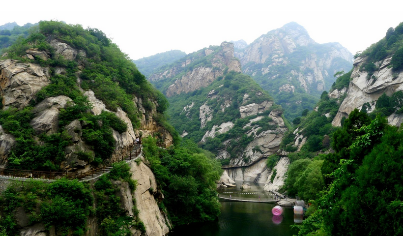 這條峽(xia)(xia)谷俗稱(cheng)轱轆(lu)峪,窈窕(tiao)峽(xia)(xia)長(chang)(chang)蜿(wan)蜒(yan)曲折,峪谷兩壁陡(dou)峭奇聳,峰(feng)(feng)巒疊嶂。三瀑(pu)(pu)十八潭(tan)(tan)(tan)貫穿其中(zhong)(zhong)(zhong),人(ren)(ren)們對(dui)黑龍潭(tan)(tan)(tan)的(de)評價(jia)是新、奇、險(xian)。在八里長(chang)(chang)的(de)深(shen)(shen)谷里,瀑(pu)(pu)布如(ru)此之(zhi)(zhi)多,在京郊無與倫比。從(cong)(cong)頭到(dao)尾,處處新穎,決無重復之(zhi)(zhi)感,一進潭(tan)(tan)(tan)頭,就把(ba)游(you)人(ren)(ren)引入 到(dao)瓊山(shan)閑境,使人(ren)(ren)心礦(kuang)神(shen)怡(yi),欣然(ran)前往。 通(tong)天瀑(pu)(pu)垂直陡(dou)峭,壁如(ru)刀削(xue),五(wu)十多米(mi)(mi)高(gao)的(de)瀑(pu)(pu)布仿佛從(cong)(cong)天而(er)降,煙靄升騰(teng),彌漫(man)山(shan)谷,冷氣撲面。落雁潭(tan)(tan)(tan)是通(tong)天瀑(pu)(pu)沖擊(ji)而(er)成,潭(tan)(tan)(tan)闊水深(shen)(shen),水面一百多平方(fang)米(mi)(mi),水深(shen)(shen)處三——四米(mi)(mi)。此外(wai)地勢較為開闊,山(shan)峰(feng)(feng)環抱(bao),山(shan)清(qing)水秀,河灘卵石縱橫,山(shan)花野(ye)草茂盛。每(mei)當初春或冬近時,大(da)雁到(dao)此棲身落腳,喝水 食,故(gu)有“落雁潭(tan)(tan)(tan)”之(zhi)(zhi)稱(cheng)。 峽(xia)(xia)谷幽深(shen)(shen),所有自然(ran)景物都自稱(cheng)奇趣(qu)。大(da)自然(ran)的(de)鬼(gui)斧神(shen)工,把(ba)這條峽(xia)(xia)谷雕鑿得景中(zhong)(zhong)(zhong)有奇,奇中(zhong)(zhong)(zhong)有景,出人(ren)(ren)意外(wai),神(shen)秘莫測。 瀑(pu)(pu)布龍潭(tan)(tan)(tan)既(ji)雄偉壯觀(guan),又揣急驚險(xian),瀑(pu)(pu)布轟鳴,潭(tan)(tan)(tan)水急旋,峰(feng)(feng)崖陡(dou)峭,谷深(shen)(shen)路窄。登梯走橋(qiao)時可從(cong)(cong)險(xian)中(zhong)(zhong)(zhong)觀(guan)景,游(you)人(ren)(ren)追求險(xian)中(zhong)(zhong)(zhong)景,甘愿“鋌而(er)走險(xian)”身臨(lin)險(xian)境,領(ling)略險(xian)中(zhong)(zhong)(zhong)景的(de)妙(miao)趣(qu),險(xian)中(zhong)(zhong)(zhong)景給(gei)游(you)人(ren)(ren)增添了(le)力量,大(da)有不到(dao)真潭(tan)(tan)(tan)非(fei)好漢的(de)感受。