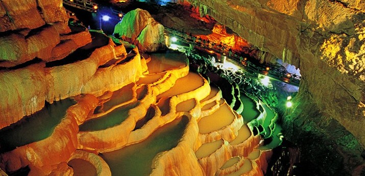【云南民族村】(游覽時間約150分鐘)參觀具有云南民族特色的【云南民族村寨】及【民族村玉文化博物館】;云南民族村將云南少數民族的文化風情、建筑藝術、音樂舞蹈、宗教信仰、生活環境濃縮于湖光山色之中,融峻山秀水、玲瓏景致和珍稀植物于園林綠化之中。后參觀南博會分館【云南民族民間工藝品交易市場】(參觀時間約60分鐘)僰銀族巖號民間銀器手工藝品,了解消失的僰人文化,欣賞云南民族工藝精品。中餐吃云南*具特色的過橋米線【高上高過橋米線】,中餐后免費品嘗云南特有的普洱茶,欣賞云南高原茶藝,聆聽茶馬古道的歷史,了解中國茶文化的起源。乘車前往國家4A級風景區喀斯特地下奇觀【九鄉】(索道費用已含,游覽時間2小時)國家重點風景名勝區、是以溶洞景觀為主體、洞外自然風光、人文景觀、民族風情融為一體的綜合性風景名勝區。晚餐后乘車返回昆明,入住酒店。