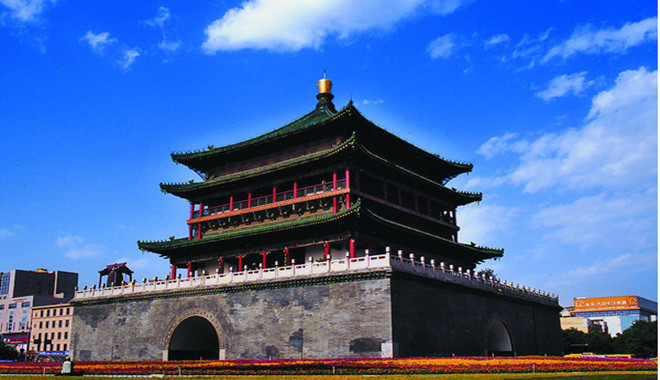 酒店早餐后(車行約20分鐘)游覽世界上保存**完整的一座古代城垣建筑—【明城墻】(門票已含,游覽時間約1小時)城墻是中國現存規模**大、保存**完整的古代城垣。現存城墻為明代建筑,全長13.7公里,始建于明太祖洪武三年,是在明太祖“高筑墻、廣積糧、緩稱王”的政策指導下,在隋、唐皇城的基礎上建成的,當時是西安的府城。后乘車約20分鐘后游覽亞洲**大的音樂噴泉廣場—【大雁塔北廣場】(游覽時間約1小時)遠觀大雁塔的風姿,看亞洲**大的音樂噴泉,后赴鐘鼓樓廣場參觀,中餐(自理約50分鐘)到【鐘鼓樓廣場】,又叫尚書省廣場,早在盛唐時期,這里是執行國家政務的**高行政機關尚書省所在地,自由參觀西安的標志性建筑鐘樓、鼓樓,游覽西安古老的具有回族風味和老西安傳統的回民街(約40分鐘)回民小吃一條街,可自費品嘗當地風味小吃(被譽為神州一絕的餃子宴,天下第一碗—牛羊肉泡饃等),