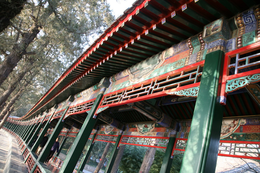 【頤和園】中國現存規模大、保存完整的皇家園林,中國四大名園(另三座為承德避暑山莊、蘇州拙政園、蘇州留園)之一。位于北京市海淀區,距北京城區十五公里,占地約二百九十公頃。利用昆明湖、萬壽山為基址,以杭州西湖風景為藍本,汲取江南園林的某些設計手法和意境而建成的一座大型天然山水園,也是保存得完整的一座皇家行宮御苑,被譽為皇家園林博物館。