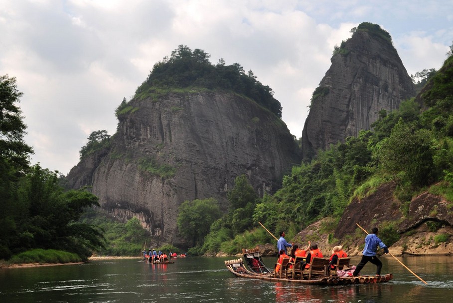 早餐后,游覽可俯覽九曲全景、縱觀云海奇觀---【天游峰景區】(游覽2.5-3h):半云爭勝—云窩、幽微碧玉--茶洞、仙凡真境--接筍峰、丹運翠屏--隱屏峰;下午可自費(竹筏票130+導服車費20)參加武夷山風景之**:九曲溪漂流(約2h), 沿途觀賞九曲兩岸綺麗風光,及懸崖絕壁上遺留的“架壑船棺”和虹橋板,水繞山行,(溫馨提示:九曲溪水流緩慢,不會濕鞋、但一定注意安全,聽從筏工安排);備注:武夷山九曲漂流的時間是武夷山竹筏公司電腦統一調度安排,任何人無權調整,地接在保證不減少景點的情況下,會對行程游覽順序作調整,敬請理解!