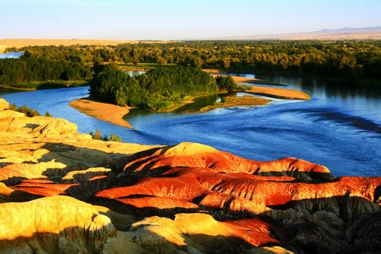 傍晚抵達布爾津前往【五彩灘】,這里就像上帝打翻的調色盤,光怪陸離的色彩從四面八方涌來,當絢麗的五彩灘遇見河谷樹林圍繞的額爾齊斯河,便孕育出一場美絕人寰的色彩盛宴。