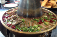 品嘗天池著名美食九碗三行子。