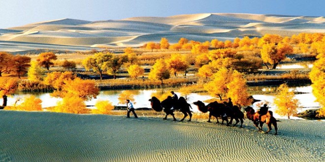 - 新疆南疆庫爾勒 博斯騰湖 輪臺胡楊林公園 塔克拉瑪干沙漠 吐魯番 天山天池雙飛7日游