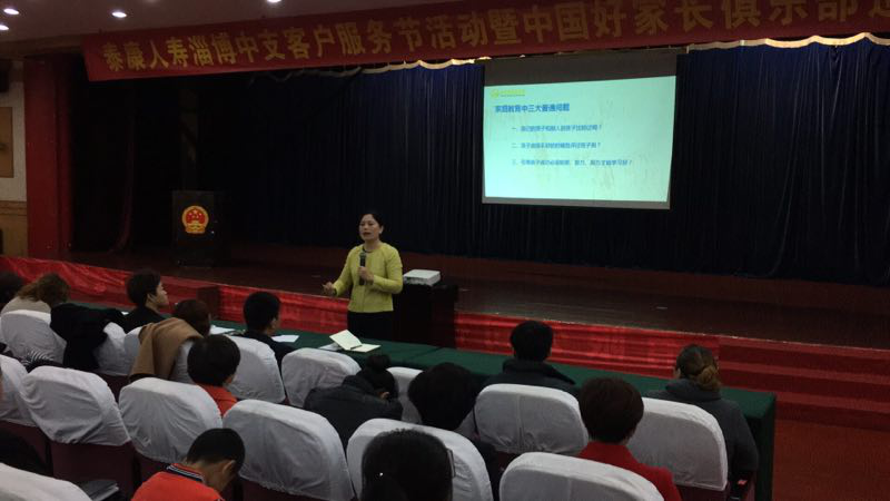 2017年11月4日,由山東金芒果教育咨詢公司承辦了泰康人壽淄博中支公司客戶節家庭教育報告會。本期主題——《一句話改變孩子的一生》。