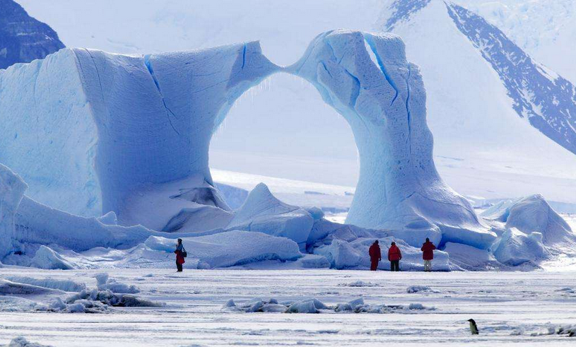 半月島呈新月形,邊沿長達1.5英里;捕鯨者于1821年就發現了這個地方;半月島是帽帶企鵝的重要棲息地。如今在這里有阿根廷夏季站,取名 Camara(卡馬拉站)。游輪繼續航行至南設得蘭群島最大的島嶼喬治王島。氣溫較高,喬治王島風光旖旎,不僅是海鳥、企鵝、海豹等極地動物的聚集地,也是南極地區科學考察站最為密集之地。今日南雪特蘭群島上有數國之科學研究基地,其中包括中國在1985年設立的長城站,尤其喬治王島共有13個, 號稱“南極的地球村”。