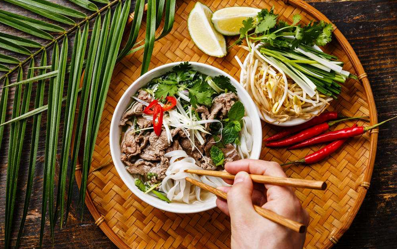 16、越南的飲食比較清淡,主要食物:米、糯米、各種青菜、豆、水果和各地區的山珍海味。越南四季都可以吃到各種新鮮美味的熱帶水果。