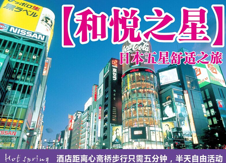 溫馨住宿 日本當地5星級酒店住宿標準:1(或2)晚大和皇家日式溫泉泡湯,大阪指定入住心齋橋市中心區酒店。