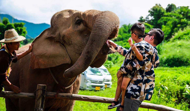在酒店內享用完美味的早餐后,驅車前往【大象訓練營】參觀工作人員在訓練大小象的工作的情形并觀看他們所安排的精彩大象表演,大象現場作畫表演,欣賞可愛大象自由隨性揮瀷表演獨創的繪畫天份。后前往【蘭花園】蘭花雖然不是泰國的國花,但確是泰國人迎賓、裝飾最常用的花,蘭花的種類有上百種, 清邁附近的梅薩山莊(Ma Sa Vally)就有許多家蘭花培植場,展覽并銷售各式蘭花。 養殖場還將蘭花幼苗培育在真空瓶中,以便游客攜帶(要查證海關能不能入境),另外也有真花拿來鍍金、鍍銀、上膠做成的別針, 特別生動,也是送禮的好選擇。前往【藍廟】繼白廟黑廟之后,又一以顏色俗稱而獨樹一幟于的廟宇。之后參觀【皮革展示中心】(約60分鐘)【毒蛇研究中心】(約60分鐘)