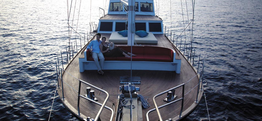 乘坐本(ben)度(du)假酒店的"地平線"豪華(hua)游艇,迎著晚霞出海(hai)攬勝