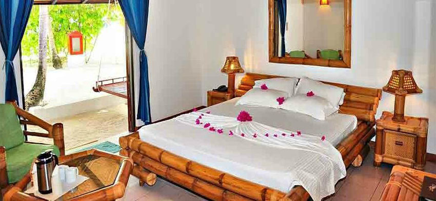 安嘎嘎島所處位置:拉薇亞妮環礁,美慕,芭環礁 距馬累機場距離:距離馬累國際機場85公里,乘水上飛機25分鐘可到達島的周邊環繞著大片美麗的珊瑚礁,房型介紹50多個植被區域。只需20分鐘就可以繞安嘎嘎島一周,并且郁郁蔥蔥的棕櫚樹也給幽徑帶來了宜人的林蔭。島的暗礁邊緣延伸很長,好像和其他的兩個島嶼連接在了一起。