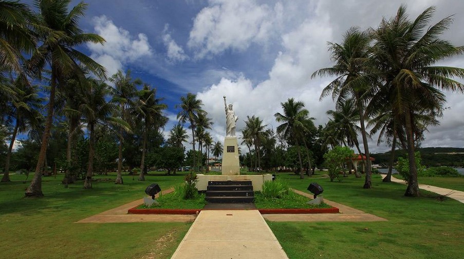 關島市區觀光:美國自由神像,自由女神像矗立在 Paseo de Susana 廣場前端,近旁是阿加納游艇碼頭。這座自由女神像是 1950 年由美國童子軍捐贈的紐約自由女神像的復制品,體積小了很多,而且為了配合當地原住民的膚色而漆成古銅色,讓當地人備感親切。圣母瑪利亞大教堂,圣母瑪莉亞教堂位于關島第一座天主教堂舊址。1669 年由帕德.圣維多利斯指導興建。正中央安置著傳奇的卡瑪琳女神的雕像 。 據說該雕像被漁民發現時,是由三支巨大的螃蟹背負著,一只背負著女神像,另二只則是各背負著一只蠟燭.還有,該神像的頭發每年都會生長.信徒每年皆會將該神像隆重的送回至梵諦岡.每星期日上午有許多人在此做禮拜。西班牙廣場,原為西班牙統治時期的總督官邸,現列為國家保護級的古跡之一。廣場中央的六角形涼亭是音樂廳,中亭還有一座巧克力屋,為昔日總督夫人宴請貴賓的場所。拉堤石公園,位在西班牙廣場旁的拉提石公園內有8根拉提石柱,是從關島南部的MEPO地區移過來的,并不是古代建筑遺址。情人崖:情人崖位于關島杜夢灣北端突出的海崖,情人崖的斷崖的海拔有123公尺高,在情人崖(ya)上修筑(zhu)了觀景臺,在觀景臺上可以利(li)用其絕佳的(de)眺(tiao)望(wang)角(jiao)度,可以覽盡整個杜夢灣(wan)優美(mei)的(de)海(hai)岸線,還(huan)可眺(tiao)望(wang)菲律(lv)賓海(hai)的(de)一望(wang)無(wu)際的(de)海(hai)面。晚餐自(zi)理,然后入住酒店(dian)休息。