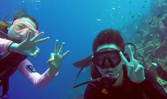 1)開展活動前,請客人認真聆聽當地工作人員的介紹,按照工作人指示從事該項活動。遵守二人同行的原則,避免單獨潛水,必須全程要緊跟教練,在指定區域潛水;