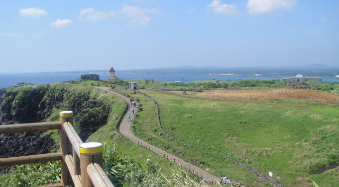 【城山日出峰】 (約 1小時)2007年被聯合國教科文組織指定為世界遺產,是突出于濟州道東部海岸的火山之一,是濟州道代表性旅游景點。