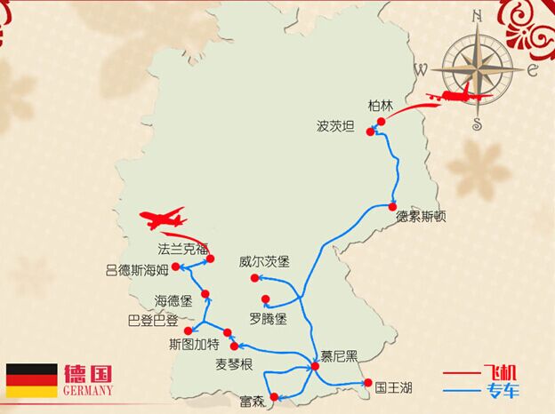 【浪(lang)漫(man)之路】*美(mei)童話城堡(bao)(bao)(bao)—新天鵝堡(bao)(bao)(bao)、“中(zhong)世紀之珠”美(mei)譽的(de)維爾茨堡(bao)(bao)(bao)、陶(tao)伯河上紅色城堡(bao)(bao)(bao)之城-羅騰堡(bao)(bao)(bao);