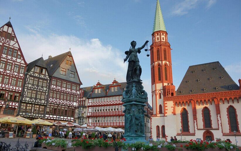 下午:驅車前往法蘭克福,羅馬廣場法蘭克福的羅馬廣場是法蘭克福老城的中心,位于美茵河以北,也是舊市政廳的所在地。廣場建于中世紀,二戰時被炸毀,戰后幾乎全部重建,如今是法蘭克福唯一一 個仍然保留著中古街道面貌的廣場,與現代化的法蘭克福形成了強烈對比。老市政廳是法蘭克福的標志之一。位于羅馬廣場上,由三座再現15世紀的三角形階梯型房子組成。這里曾是加冕皇帝的場所,現在是市長辦公的地方。樓房的二樓有個皇帝大 廳Kaisersaal,是神圣羅馬帝國皇帝舉行加冕典禮的地方,大廳四壁懸掛著從查里曼大帝到佛朗茨二世共52個皇帝的畫像。以前皇帝加冕儀式后的宴會 廳,現在是接待大廳,如今也是德國國國家足球隊凱旋歸來和球迷狂歡的地方。在二樓有徽章圖紋裝飾的露臺上,德國足球隊的球員們接受群眾歡迎。法蘭克福大教堂(外觀)由羅馬廣場東側穿過半木造市民住宅,就可以看到法蘭克福大教堂。這是一座磚紅色的哥特式建筑,從12世紀就一直成為國王的加冕典禮舉辦地,因此又被稱為“皇帝大教堂”。如今教堂寶庫內陳列有大主教們在加冕典禮時所穿的華麗衣袍。