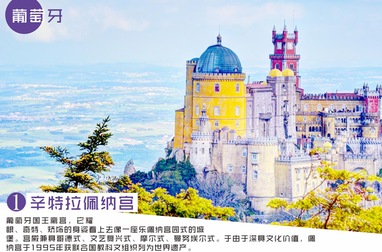 11:00 乘車前往素有”伊甸園”之稱的辛特拉,游覽辛特拉佩納宮{,是葡萄牙國王離宮,它耀眼、奇特、矯飾的身姿看上去像一座樂佩納宮園式的城堡。宮殿本身為多種建筑風格的大雜燴,兼具哥德式、文藝復興式、摩爾式、曼努埃爾式。乃十九世紀葡萄牙女王瑪麗雅二世的丈夫——費迪南德之心血結晶。于由于深具文化價值,佩納宮于1995年獲聯合國教科文組織列為世界遺產。