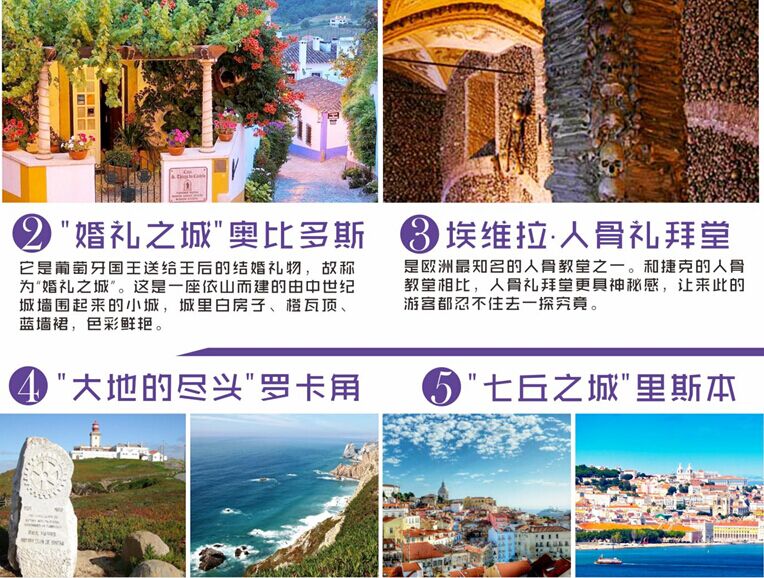 ?婚禮之城--葡萄牙(ya)奧比(bi)多斯(si);安達盧西亞(ya)白(bai)色山城--米哈斯(si);唐吉歌德(de)足跡--西班牙(ya)風車村;皇(huang)家(jia)馬德(de)里俱樂部--伯納(na)烏球場(chang);