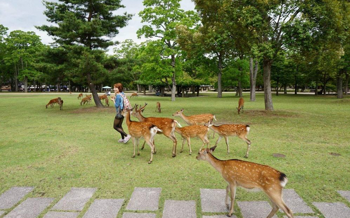 【東大寺、神鹿公園】奈良神鹿公園堪稱是世界上數一數二的大公園,公園內有很多名勝古跡巨樹叢立,還有歷史悠久的古花草、山林及巖石等,這些都讓到日本旅游的游客贊嘆不已。據說在古時代的時候,供奉在春日大社的武晃翁槌命,當年從陸國移駕到奈良就是騎在一只白鹿上,所以現在的日本人把奈良的馴鹿視為不可侵犯的神鹿,刻意加以保護