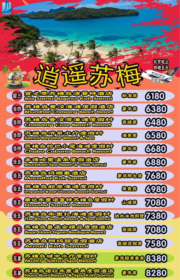 蘇梅島自由行4晚5天**機票の酒店**7-8月發團計劃