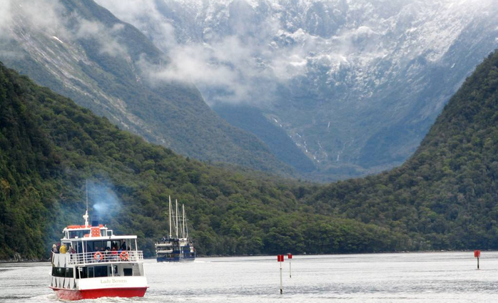 5. 米佛峽(xia)灣:新西蘭最大(da)的(de)國家公園(yuan),世(shi)界(jie)八(ba)大(da)奇景(jing)之一,200萬年前的(de)巨大(da)冰川運動,產生深邃的(de)峽(xia)谷。