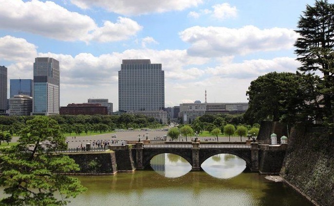【皇居】歷代天皇及其家人的住所。皇居的大部分不開放參觀,平時游人只能在皇宮外苑外的皇宮廣場附近游覽一番。整個皇居區域林木蔥蔥,滿目蒼翠,堪稱都市綠洲。