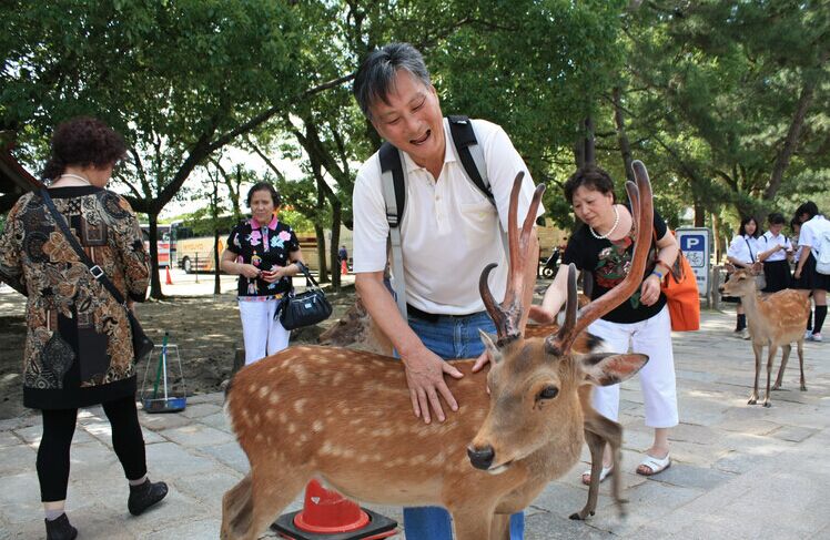 【奈良公園及春日大社】(60分鐘)占地5.25平方公里,東西長約四公里,南北寬兩公里,范圍甚大,堪稱是世界上數一數二的大公園,公園內有很多名勝古跡巨樹叢立,還有歷史悠久的古花草、山林及巖石等,這些都讓到日本旅游的游客贊嘆不已,另外,這里當然有神鹿啦!共有1,200多只,散布于山間、林下或寺廟的池畔,是奈良觀光的象征。每年櫻花到來之際也是奈良著名的賞櫻場所。