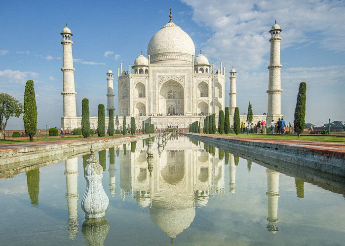 ,那些堪稱是世界最高水準的建筑群如今成為阿格拉的亮點。午餐后,參觀世界文化遺產新七大奇跡之一的【泰姬陵(入內,約1.5 小時)】來自世界各地的匠工們歷經 22 年,于 1653 年竣工。這座偉大的建筑承載著沙賈汗對他心愛的皇后那份至死不渝、永垂不朽的情,這座被稱作“世上最美麗的陵墓”規模宏大,建造精美、細膩,是伊斯蘭教建筑的杰作,具有極高的藝術價值和欣賞價值。參觀【克什米爾羊毛制品店】及【特色手工藝品店】晚餐后,入住酒店休息。