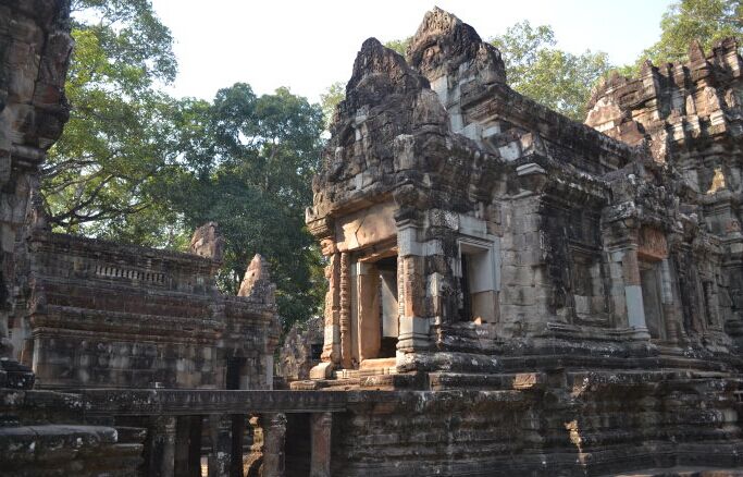 下午:可自行前往羅洛士建筑群,被人們稱之為“高棉藝術的開端”,吳哥王朝的創立者耶跋摩二世曾建立了數個首都。所含主要景點:巴公寺,羅洛士建筑群中面積最大、也是最有趣的寺廟,在它東邊入口的北側有一個活躍的佛教寺院;神牛寺,六座石廳面向東方,排成兩排,由砂巖石雕和石膏浮雕作為裝飾,這些浮雕是吳哥保存最完好的;羅萊寺,四座磚結構寶塔幾乎與神牛寺的寶塔如出一轍。它位于一座大型水庫的中心島上,這座水庫是由耶樹跋摩一世修建的,如今已經成為一片稻田。