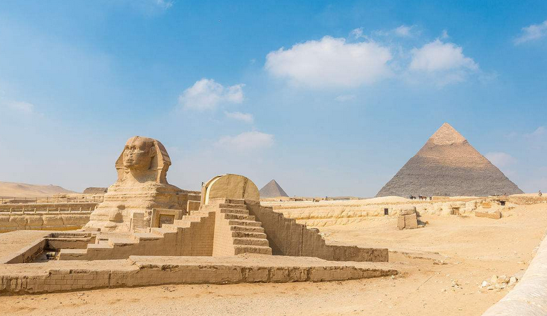 搭乘阿提哈德航空EY889(0110/0625約8小時50分)飛往阿布扎比,抵達后轉乘阿提哈德航空EY647(1050/1310約4小時15分)飛往埃及首都-開羅,抵達后專人接機,驅車前往吉薩區,參觀世界七大奇跡之一的吉薩金字塔群,約從公元前3500年開始,尼羅河兩岸陸續出現幾十個奴隸制小國。約公元前3000年,初步統一的古代埃及國家建立起來。古埃及國王也稱法老,是古埃及最大的奴隸主,擁有至高無上的權力。他們被看做是神的化身。他們為自己修建了巨大的陵墓金字塔,金字塔就成了法老權力的象征。因為這些巨大的陵墓外形形似漢字的“金”字,因此我們將其稱之為“金字塔”。 開羅郊區吉薩的三座金字塔,包括胡夫金字塔、海芙拉金字塔、孟卡拉金字塔以及神秘的獅身人面像(參觀不少于1.5小時);晚餐后入住酒店休息.