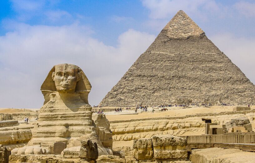 05:30 抵達開羅,專人于機場接機;隨后乘車前往吉薩區,參觀世界七大奇跡之一的【吉薩金字塔群】;包括胡夫金字塔(外觀)、海芙拉金字塔(外觀)、以及神秘的獅身人面像(外觀),吉薩區的金字塔的偉大在于其外形建筑而舉世聞名,及其堅貞的守護神獅身人面像;