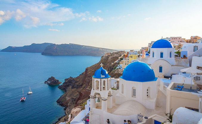酒店享用西式早餐后,乘船前往圣托里尼。抵達后,前往該島最西端的火山斷崖伊亞(自由活動約1小時),捕捉該島嶼最經典的白色小教堂映襯藍色愛琴海的唯美景致和最浪漫的“夕陽日落愛琴海”;入住酒店