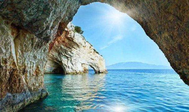 上午:早餐后乘船前往Blue Caves,藍洞★,發現于1897年,洞長約50米,寬約25米,高約25米,比世界上許多類似的洞穴都要大得多。陽光經過海面折射映射在洞穴的內部,產生耀眼的藍色,美不勝收。洞穴反射的藍色倒影以及奇特的巖石形態造就了藍色洞穴,使之聞名于世。沉船灣是希臘扎金索斯最著名的景點。1983年,走私船Panagiotis號在運送香煙時失事擱淺于此,該地自此得名“沉船灣”。因此沉船灣也叫海盜灣,因電視劇《太陽的后羿》而火遍全球,陡峭的懸崖、清澈蔚藍的海水、潔白的沙灘間,鬼斧神工地橫著一條銹跡斑斑的老鐵船,為游客帶來視覺上的極大震撼。