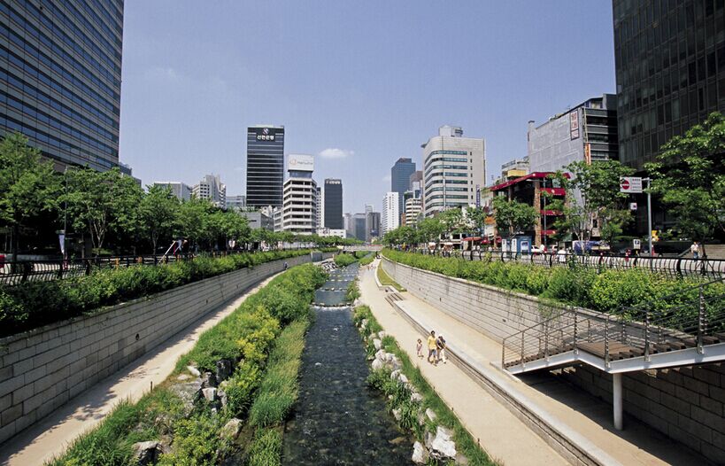 【南怡島】因韓劇《冬季戀歌》而蜚聲全亞洲,南怡島的電線全都埋在地下,島上看不見任何電線桿,使自然景觀得以完整而真實地展現,這讓看慣了鋼筋水泥的現代人仿佛一下子放松了身心,回歸自然。【韓國時尚化妝品】(約40分鐘)。隨后前往參觀【清溪川】(約30分鐘)貫穿首爾南北,見證百年滄桑。近年水溝整治后,已被修建為了一條秀麗清新的小河,人們可以在岸邊散步聊天。清溪廣場位于清溪川源頭,標志物是個形似海螺或是筍尖的雕塑,伴隨著溪水淙淙,意喻著新生。清溪川四周設立了很多文化空間,雕塑、繪畫、小橋都是拍照留念的不錯景觀。【廣藏市場】(約60分鐘左右)這里是熱播綜藝節目《奔跑吧兄弟》的取景地,不僅有各種服飾可以挑選,還有很多韓國當地特色小吃供游客們品嘗。晚餐在廣藏市場自行品嘗特色小吃,之后入住酒店休息。